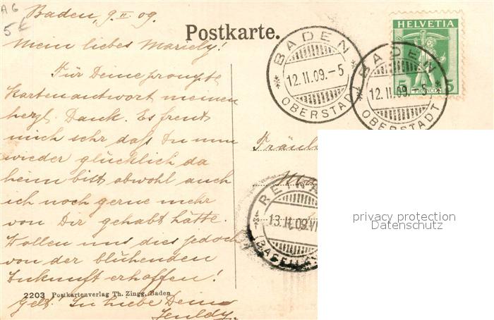 13558689 alte Postkarte Baden AG Villa Burghalde postalisch gelaufen Erhaltung siehe scans [WerneD78] KatCode: 11470010010034