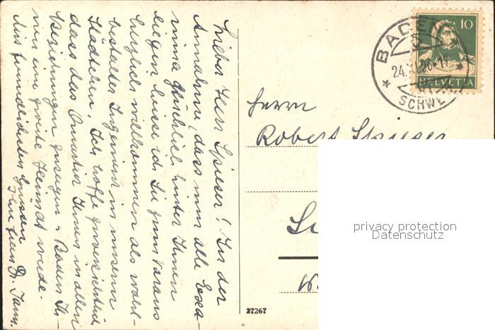 11745651 alte Postkarte Baden AG Villa postalisch gelaufen Erhaltung siehe scans KatCode: 11470010010034