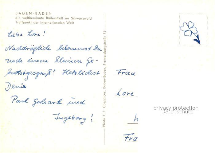 73122124 Baden-Baden postalisch nicht gelaufen Erhaltung siehe scans [NatalD47] KatCode: 11110008211000