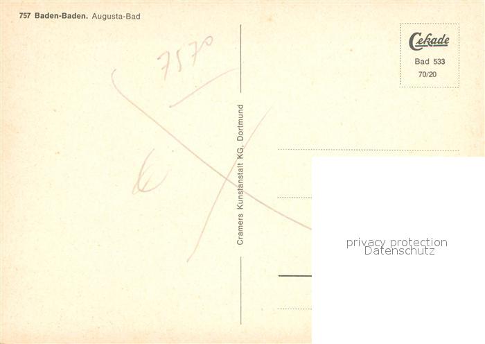 73016344 Baden-Baden Augusta-Bad postalisch nicht gelaufen Erhaltung siehe scans [NatalD47] KatCode: 11110008211000