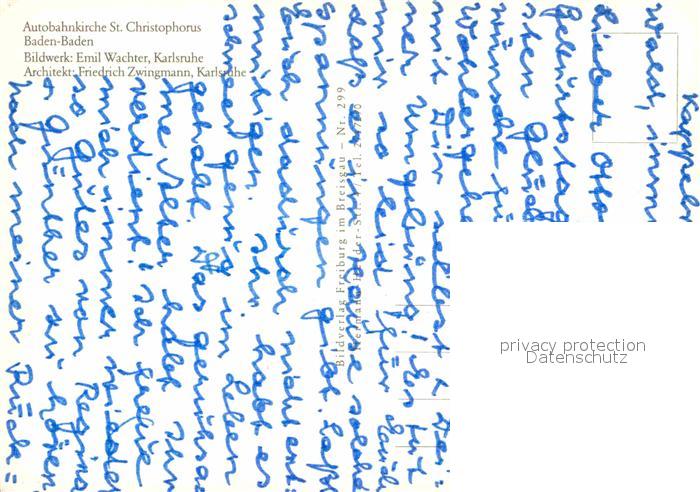 72899301 Baden-Baden Autobahnkirche St. Christophorus postalisch nicht gelaufen Erhaltung siehe scans [NatalD47] KatCode: 11110008211000