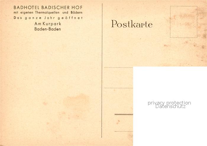 72979779 Baden-Baden Badhotel Badischer Hof am Kurpark postalisch nicht gelaufen Erhaltung siehe scans [FriedD77] KatCode: 11110008211000