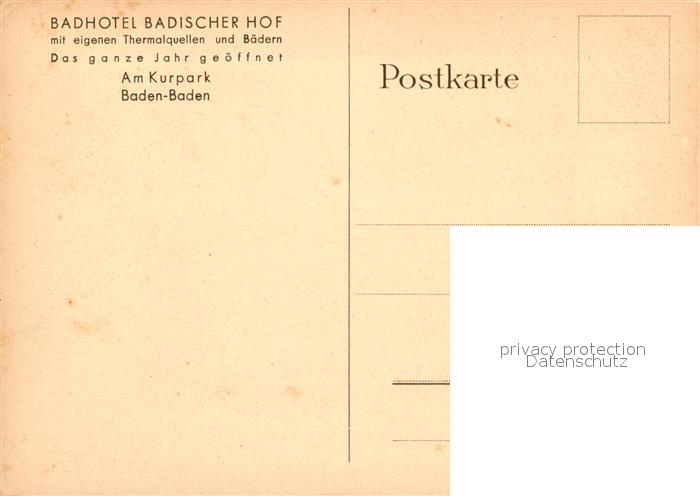 72980870 Baden-Baden Badhotel Badischer Hof am Kurpark postalisch nicht gelaufen Erhaltung siehe scans [FriedD77] KatCode: 11110008211000