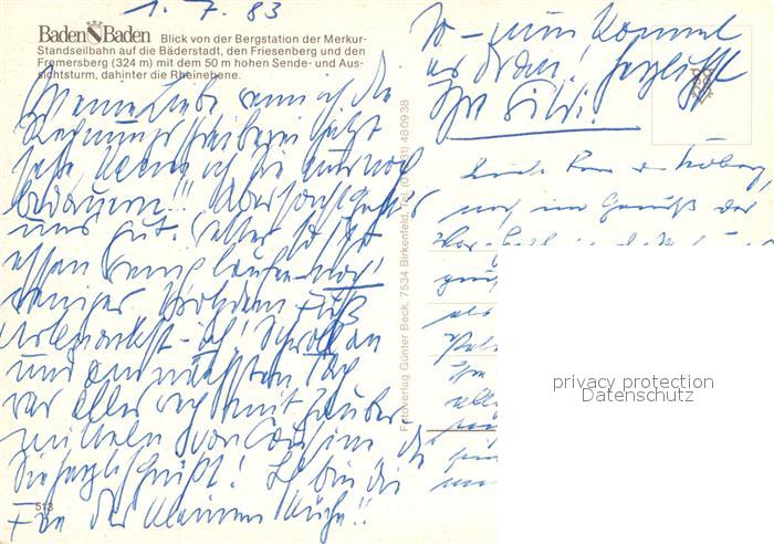 72942157 Baden-Baden Blick von Bergstation Merkurstandseilbahn Friesenberg Fremersberg postalisch nicht gelaufen Erhaltung siehe scans [KathaD81] KatCode: 11110008211000