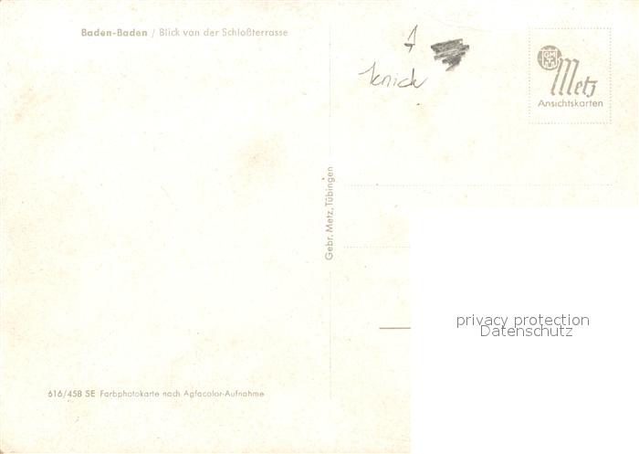 73018328 Baden-Baden Blick von der Schlossterrasse postalisch nicht gelaufen Erhaltung siehe scans [WerneD78] KatCode: 11110008211000