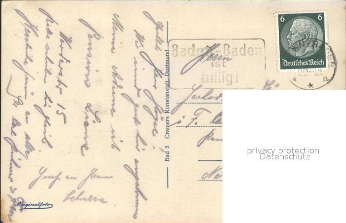 71848581 alte Postkarte BADEN-BADEN BW postalisch gelaufen Erhaltung siehe scans KatCode: 11110008211000