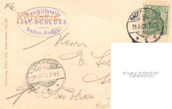 43510700 BADEN-BADEN BW Altes Schloss Burgruine Kuenstlerkarte postalisch gelaufen Erhaltung siehe scans [FriedD77] alte Postkarte Frie Katcode 11110008211000