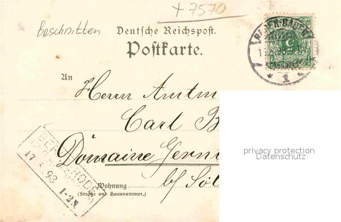 42879926 alte Postkarte BADEN-BADEN BW Altes Schloss Schloss Solms Leopoldsplatz postalisch gelaufen Erhaltung siehe scans [KathaD81] KatCode: 11110008211000