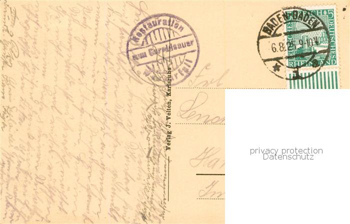 73820607 BADEN-BADEN BW Am Geroldsauer Wasserfall postalisch gelaufen Erhaltung siehe scans [WerneD78] alte Postkarte Wern Katcode 11110008211000