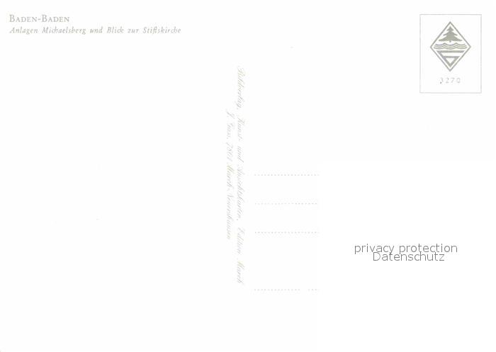 72696740 BADEN-BADEN BW Anlagen Michaelsberg Schwanenteich Blick zur Stiftskirche postalisch nicht gelaufen Erhaltung siehe scans [FriedD77] KatCode: 11110008211000