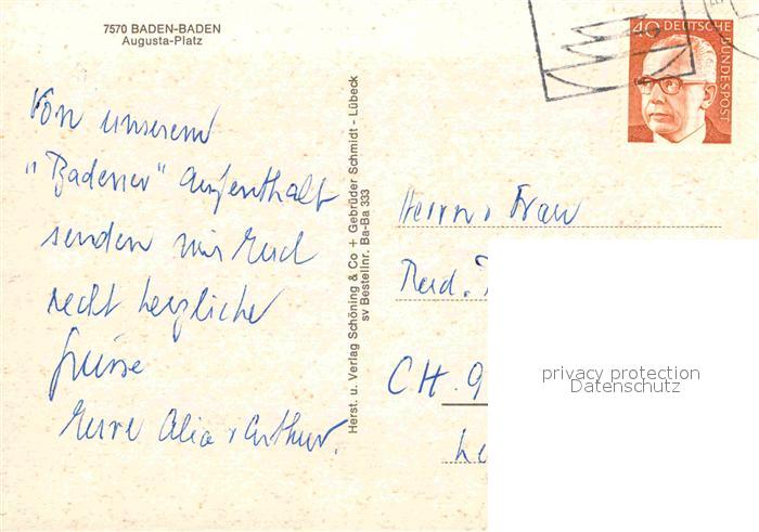 72667330 alte Postkarte BADEN-BADEN BW Augusta Platz postalisch gelaufen Erhaltung siehe scans [AndreD76] KatCode: 11110008211000