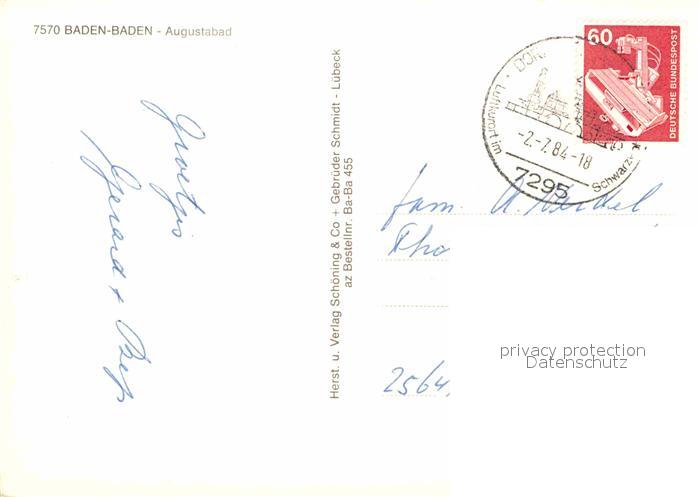 72654892 alte Postkarte BADEN-BADEN BW Augustabad postalisch gelaufen Erhaltung siehe scans [LiesaD40] KatCode: 11110008211000