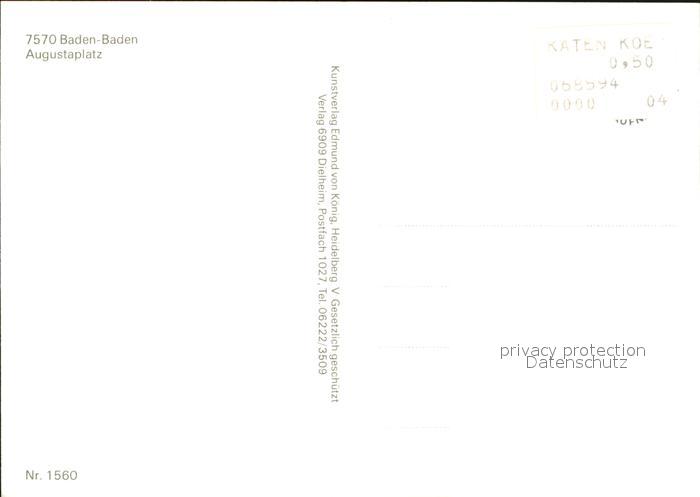 72566082 BADEN-BADEN BW Augustaplatz Kirche Fontaene postalisch nicht gelaufen Erhaltung siehe scans [WerneD78] KatCode: 11110008211000