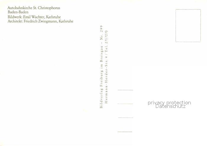 72826088 BADEN-BADEN BW Autobahnkirche Sankt Christophorus postalisch nicht gelaufen Erhaltung siehe scans [AndreD76] KatCode: 11110008211000