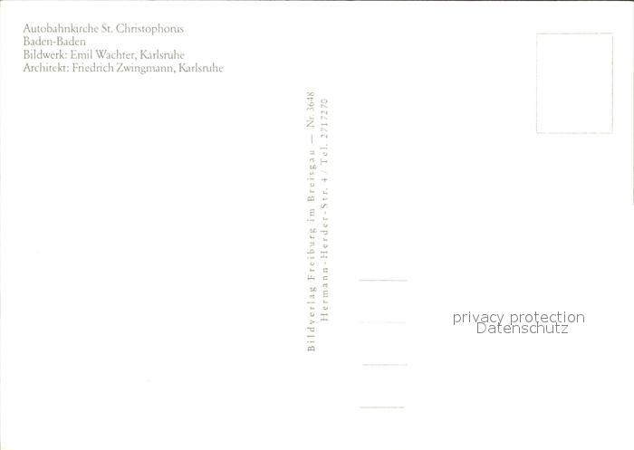 72556176 BADEN-BADEN BW Autobahnkirche St. Christophorus postalisch nicht gelaufen Erhaltung siehe scans [LiesaD40] KatCode: 11110008211000