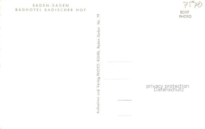 43347978 BADEN-BADEN BW Badhotel Badischer Hof postalisch nicht gelaufen Erhaltung siehe scans [KathaD81] Kath Katcode 11110008211000
