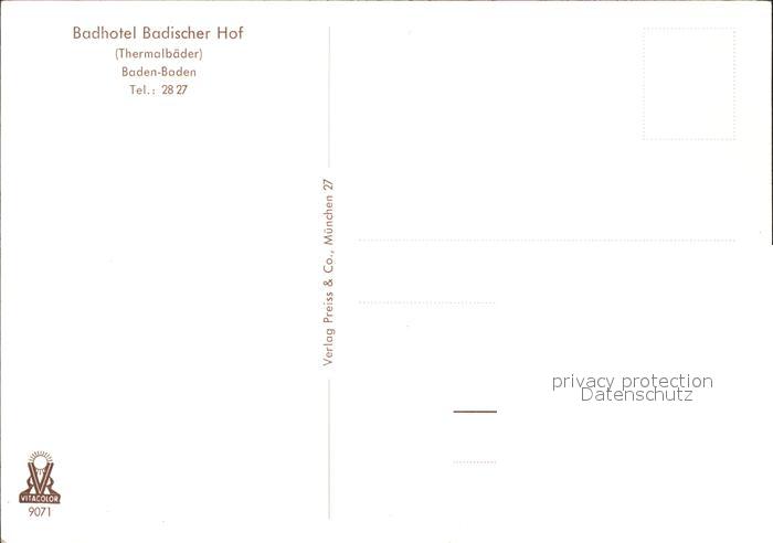 71893607 BADEN-BADEN BW Badhotel Badischer Hof postalisch nicht gelaufen Erhaltung siehe scans KatCode: 11110008211000
