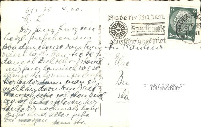 71934610 alte Postkarte BADEN-BADEN BW Blick vom Friesenberg postalisch gelaufen Erhaltung siehe scans KatCode: 11110008211000