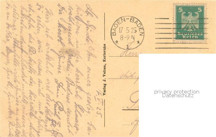 73756585 BADEN-BADEN BW Blick vom Turm des Schlosses Solms postalisch gelaufen Erhaltung siehe scans [WerneD78] alte Postkarte Wern Katcode 11110008211000
