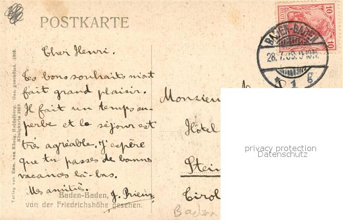 43495246 BADEN-BADEN BW Blick von der Friedrichshoehe postalisch gelaufen Erhaltung siehe scans [KathaD81] alte Postkarte Kath Katcode 11110008211000