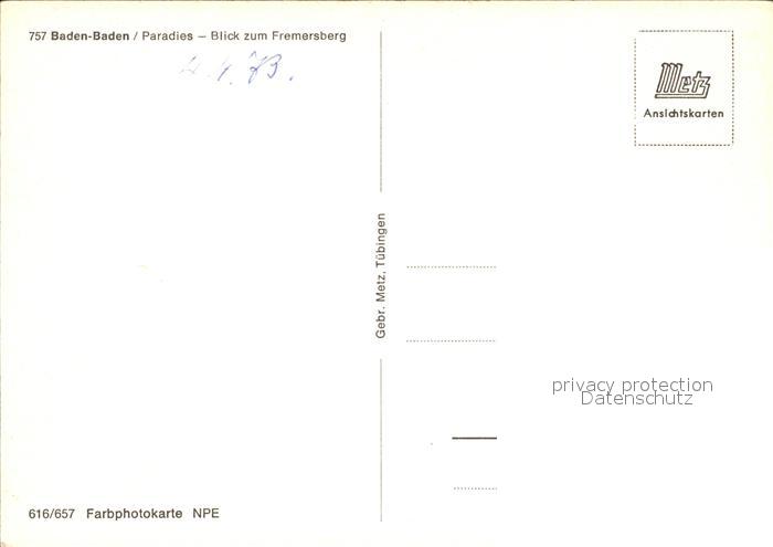 72540479 BADEN-BADEN BW Blick zum Fremersberg postalisch nicht gelaufen Erhaltung siehe scans [LiesaD40 kt122box] KatCode: 11110008211000