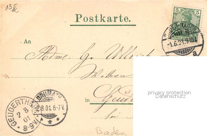 43511707 BADEN-BADEN BW Blick zum Schloss Gasthaus zur Rose postalisch gelaufen Erhaltung siehe scans [FriedD77] alte Postkarte Frie Katcode 11110008211000