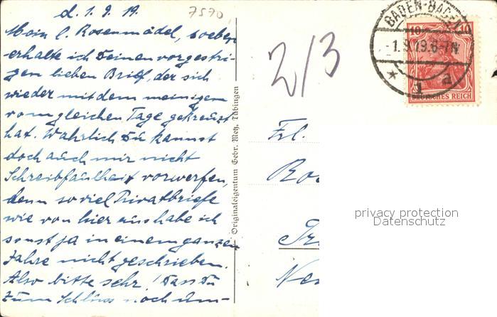 71680706 alte Postkarte BADEN-BADEN BW Brenner neuer Kurhof postalisch gelaufen Erhaltung siehe scans KatCode: 11110008211000