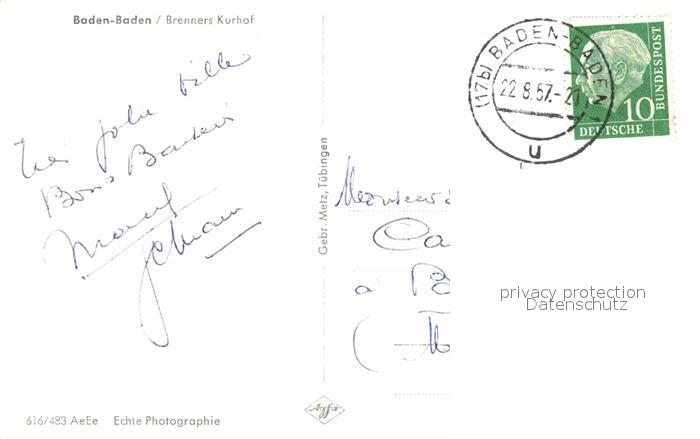 72725028 alte Postkarte BADEN-BADEN BW Brenners Kurhof postalisch gelaufen Erhaltung siehe scans [WerneD78] KatCode: 11110008211000
