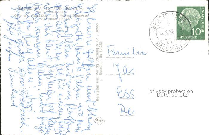 72200179 alte Postkarte BADEN-BADEN BW Burgruine Alt-Eberstein postalisch gelaufen Erhaltung siehe scans KatCode: 11110008211000