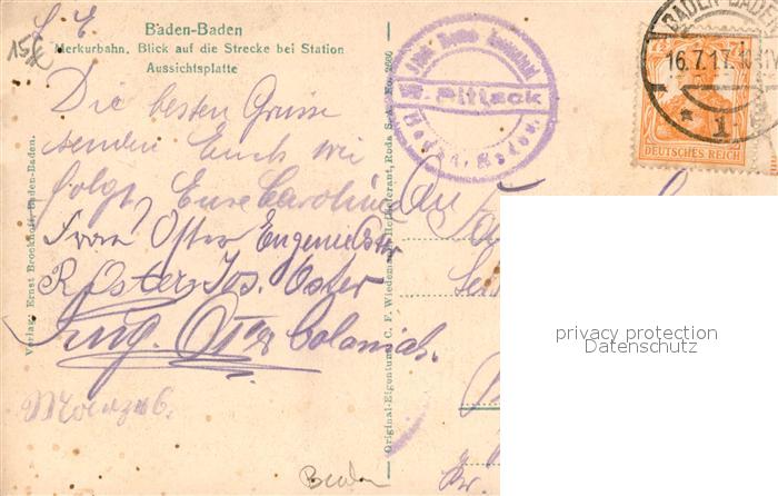 43510777 BADEN-BADEN BW Drahtseilbahn auf den Merkur postalisch gelaufen Erhaltung siehe scans [FriedD77] alte Postkarte Frie Katcode 11110008211000