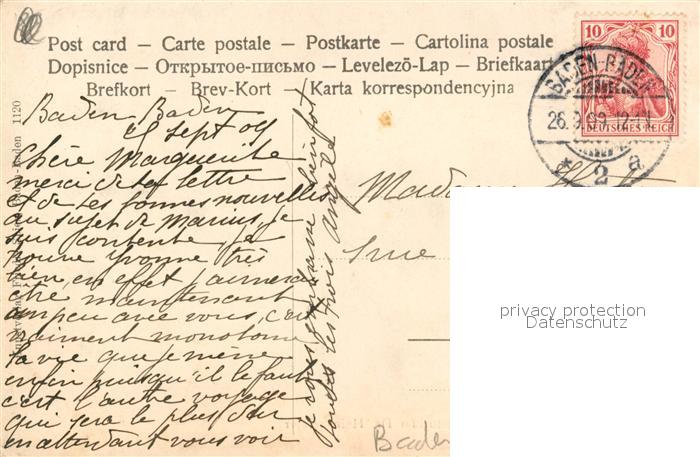 43492302 BADEN-BADEN BW Echo Sanatorium Heinsheimer postalisch gelaufen Erhaltung siehe scans [KathaD81] alte Postkarte Kath Katcode 11110008211000