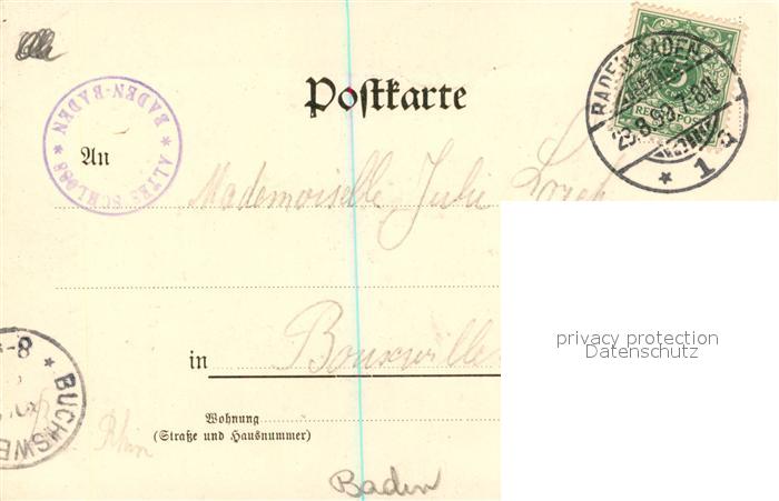 43510754 BADEN-BADEN BW Eingang zum alten Schloss Hohenbaden postalisch gelaufen Erhaltung siehe scans [FriedD77] alte Postkarte Frie Katcode 11110008211000