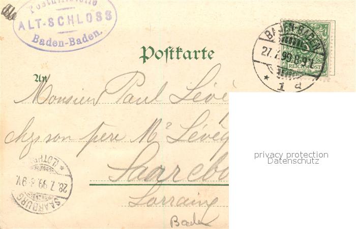 43510756 BADEN-BADEN BW Eingang zum alten Schloss postalisch gelaufen Erhaltung siehe scans [FriedD77] alte Postkarte Frie Katcode 11110008211000