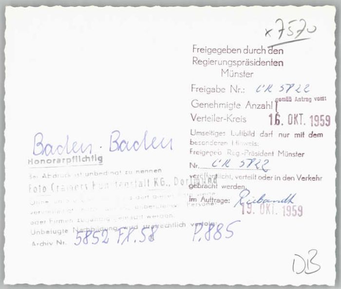 40030387 BADEN-BADEN BW Fliegeraufnahme Postalisch nicht gelaufen Alte Ansichtskarte Postkarte Katcode 11110008211000