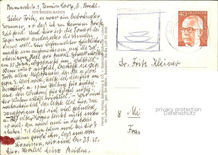 72598703 alte Postkarte BADEN-BADEN BW Fliegeraufnahme postalisch gelaufen Erhaltung siehe scans [LiesaD40] KatCode: 11110008211000