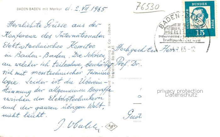 73762086 BADEN-BADEN BW Fliegeraufnahme mit Merkur postalisch gelaufen Erhaltung siehe scans [WerneD78] alte Postkarte Wern Katcode 11110008211000