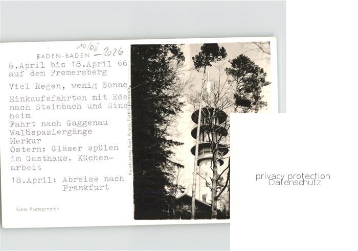 71933513 BADEN-BADEN BW Fremdsberg Teilansicht postalisch nicht gelaufen Erhaltung siehe scans KatCode: 11110008211000