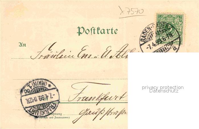 42879923 alte Postkarte BADEN-BADEN BW Geroldsauer Wasserfall Trinkhalle Altes Schloss Waldsee postalisch gelaufen Erhaltung siehe scans [KathaD81] KatCode: 11110008211000