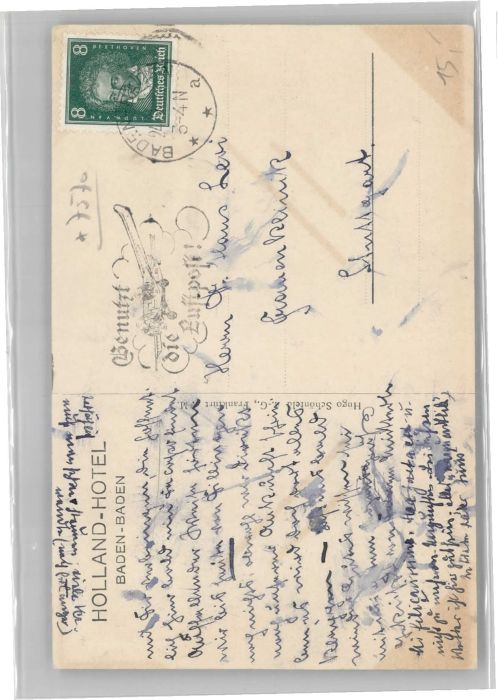 40716549 BADEN-BADEN BW Holland Hotel postalisch gelaufen Alte Ansichtskarte Postkarte alte Postkarte Katcode 11110008211000