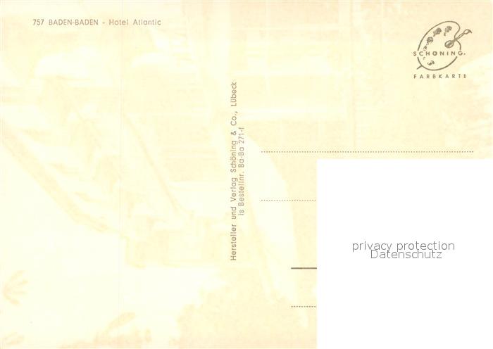 73704627 BADEN-BADEN BW Hotel Atlantic postalisch nicht gelaufen Erhaltung siehe scans [FriedD77] Frie Katcode 11110008211000