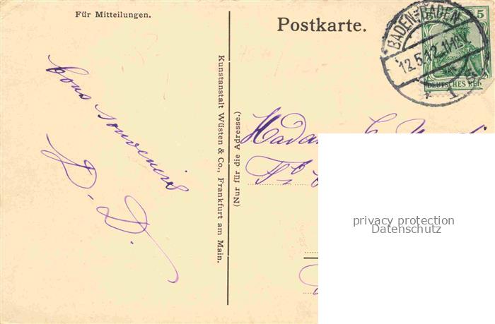 74010518 BADEN-BADEN BW Hotel Franzoesischer Hof Hotel de France Trinkhalle am Kaiser-Wilhelm-Denkmal Richard Pohl Gedicht Litho postalisch gelaufen Erhaltung siehe scans [FriedD77] alte Postkarte Frie Katcode 11110008211000