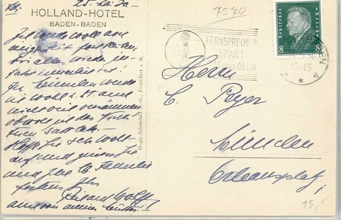 40227934 BADEN-BADEN BW Hotel Holland postalisch gelaufen Alte Ansichtskarte Postkarte alte Postkarte Katcode 11110008211000