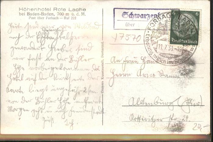 40954862 BADEN-BADEN BW Hotel Rote Lache NZ4 postalisch gelaufen Alte Ansichtskarte Postkarte alte Postkarte Katcode 11110008211000