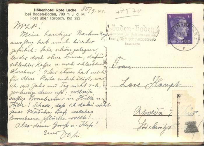 40954871 BADEN-BADEN BW Hotel Rote Lache NZ4 postalisch gelaufen Alte Ansichtskarte Postkarte alte Postkarte Katcode 11110008211000