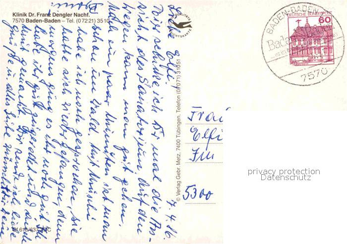 72757641 alte Postkarte BADEN-BADEN BW Klink Dr Franz Dengler Nachf postalisch gelaufen Erhaltung siehe scans [WerneD78] KatCode: 11110008211000