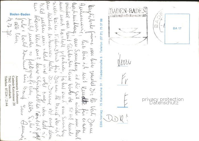 72567414 alte Postkarte BADEN-BADEN BW Kongresshaus Friedrichsbad Augustabad postalisch gelaufen Erhaltung siehe scans [LiesaD40] KatCode: 11110008211000