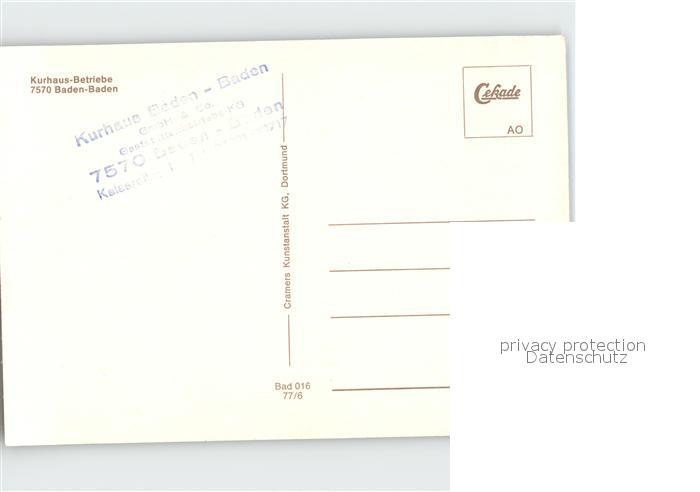 72256905 BADEN-BADEN BW Kurhaus Betriebe postalisch nicht gelaufen Erhaltung siehe scans KatCode: 11110008211000