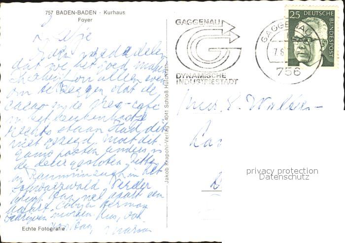 72579227 alte Postkarte BADEN-BADEN BW Kurhaus Foyer postalisch gelaufen Erhaltung siehe scans [LiesaD40] KatCode: 11110008211000