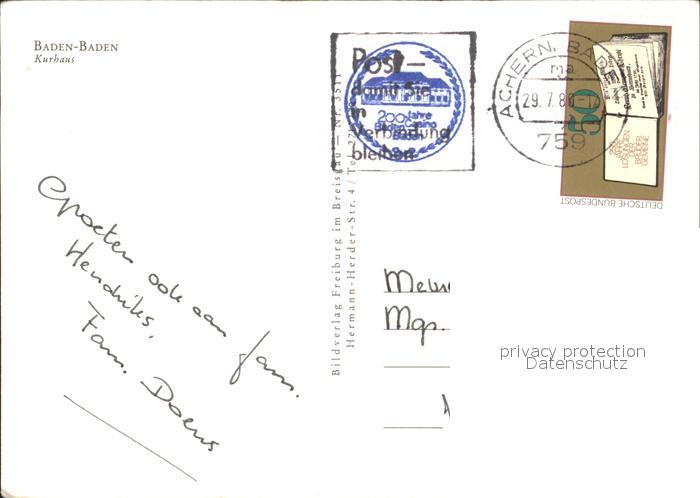 72376507 alte Postkarte BADEN-BADEN BW Kurhaus Park postalisch gelaufen Erhaltung siehe scans KatCode: 11110008211000