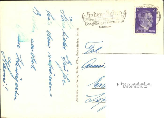 72478113 alte Postkarte BADEN-BADEN BW Kurhaus Treppe postalisch gelaufen Erhaltung siehe scans KatCode: 11110008211000